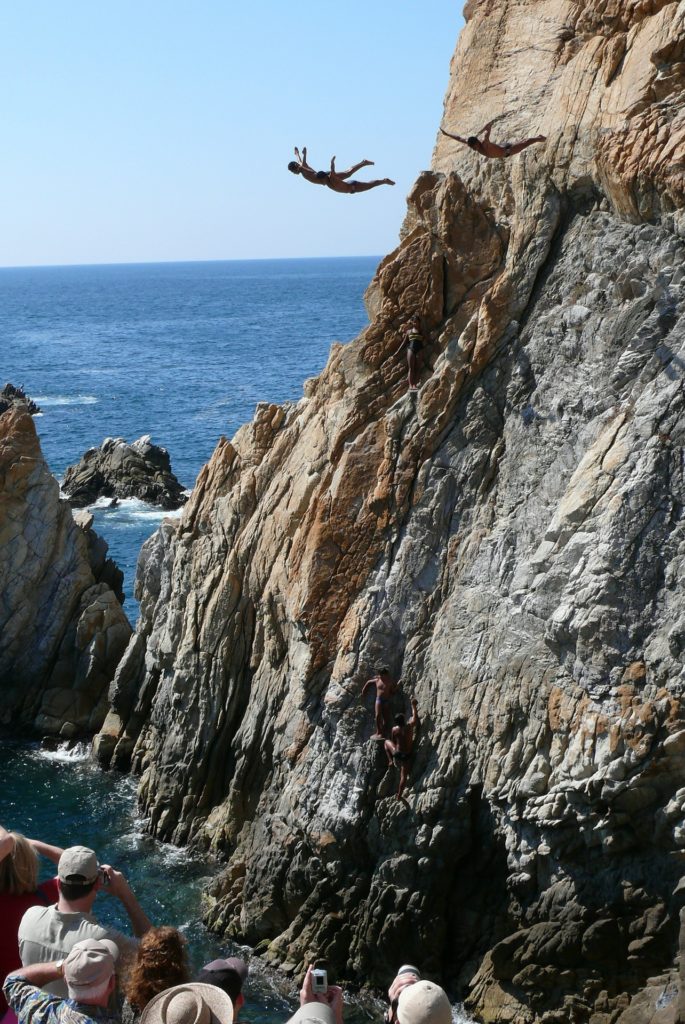 Aquí podrás disfrutar del espectáculo de los clavadistas que se lanzan al mar en una fosa de aproximadamente de 4 a 6 metros de profundidad dependiendo el oleaje , por lo que sólo expertos realizan el salto ya que deben esperar el oleaje perfecto para lanzarse y poder evitar algún accidente; los clavadistas dan aproximadamente 5 shows al día  en los siguientes horarios 13:00 ,19:30, 20:30, 21:30 y 22:30 y cuando se realizan por la noche se lanzan con una antorcha en la mano, aquí los clavadistas desafían el peligro para brindar al público un gran momento de emoción ya que hay algunos que llegan a realizar acrobacias al momento de lanzarse.